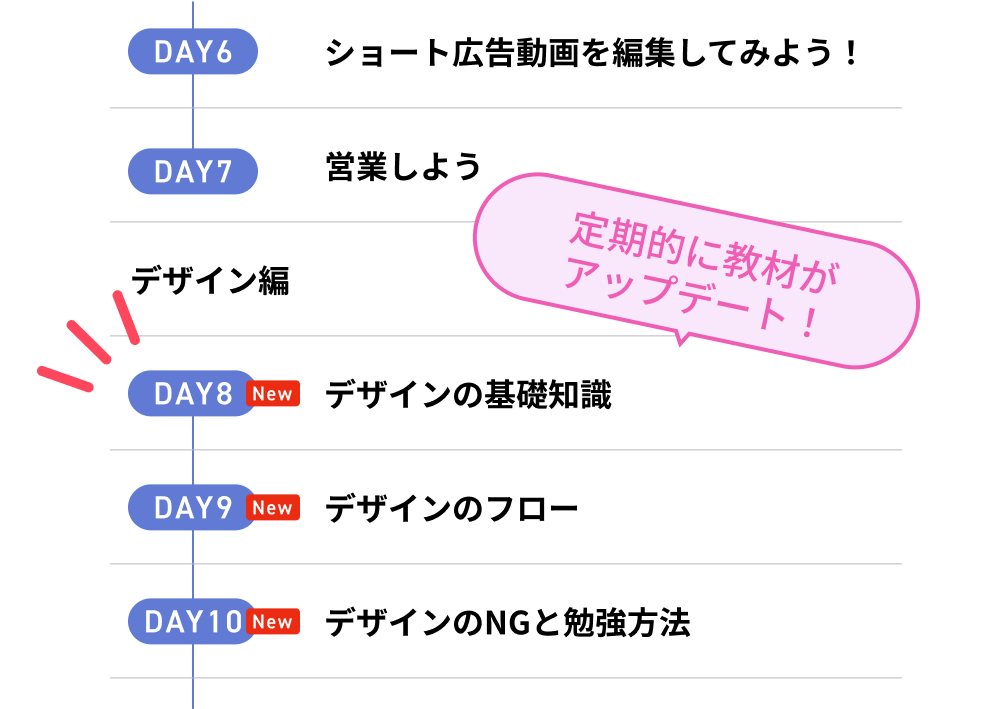 デイトラでは動画編集から営業方法まで、実務に必要な知識を無駄なく身につけます。
